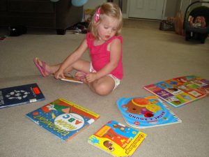 I decided to conquer the library with both kids on Monday (I took Macy a lot last summer, but I hadn’t braved taking both yet this year)…obviously I got some rest over the weekend and was feeling spunky…that or I’ve just finally lost all rational thought.  I had to get a book for preschool and decided that as long as we got out with the book I needed and without any huge meltdowns that I would consider the visit a success.  Well guess what!  Not only did I get the book I was looking for without a meltdown, but also got some books and a video for Macy and another book for me…and we left the library with all the other books intact!