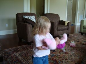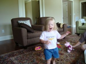 Macy LOVES to dance.  She has always loved music and she’s been dancing since she’s been walking.  Her dancing started as “interpretive” which were fluid movements with her head and arms.  These days her dancing is more “contemporary” and involves a lot of jumping and spinning.  It amazes me that she can pick out different instruments in music and pays attention to music when I don’t even notice it’s there.  It makes me wonder if music will be such a big part of her life as she gets older.