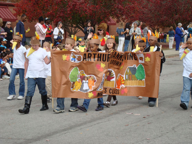 I am thankful for my entire day yesterday because it was a day that I had been hoping and praying for since I was pregnant with Macy. What big monumental day was it, you ask? The day before Thanksgiving break! (Don’t worry, an explanation is coming) For the past 6 years I’ve spent this day with 2nd graders. It was a fun day because our school holds an annual Book Parade on this day. Every class chooses a book and then creates a banner and then dresses in costumes related to their book…then everyone in the school parades down the street for everyone to see. For the past 6 years I’ve spent this day coloring a banner, retying a piggy nose, or adjusting mouse ears…and trying to keep 20ish VERY excited 7 year olds under control. 😉 It’s a fun and exhausting day!