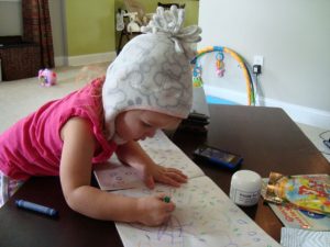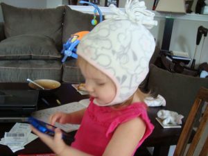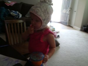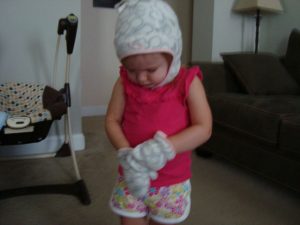 Macy’s new winter hat and gloves are a HUGE hit!  As soon as she saw them she wanted to put them on and go outside…she hasn’t figured out that it’s still 90 degrees outside.  When I told her that it was too hot to wear them outside, she decided that she would just wear them inside…all day long.